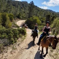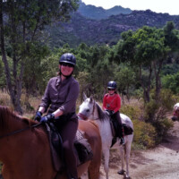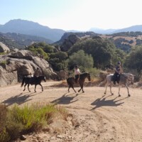 Dieser Ritt führt uns durch das Hinterland nach Macciucatu. Der erste Teil des Rittes geht hoch in die Berge. Von der flachen Buschvegetation mit Blick auf die rundumliegende Berglandschaft wechselt es oben in eine ganz andere Umgebung. Es erwartet uns eine rustikale und wilde Natur, die durch Pinien -und Korkeichenwälder führt, eingeschlossen inmitten der Granit -Felsberge, sozusagen die „Rocky Mountains“ der Gallura. Talabwärts geht’s mit Ausblick auf die Schlucht „Lu Madjone“. Das anspruchsvolle Gelände mit steinigem Untergrund wird von unseren trittsicheren Geländepferden leicht bewältigt. Zurück im Tal, reiten wir weiter Richtung San Giovanni nach Hause.