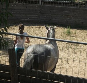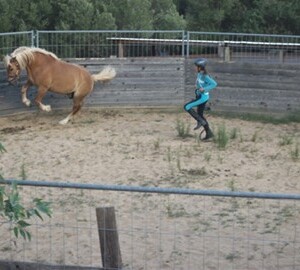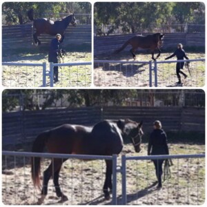 In the basic course, which includes 8 units that are carried out in 4 double units, we start with the theory and then work with the horse both, in the arena and freely in the round pen. We are given specific knowledge, such as the connection between instinct and anatomy, the importance of leadership in the herd, the terms flight animal and herd animal and what do they mean in reality? We learn to communicate with the horse in its language, i.e. in non-verbal body language, and to recognize its gestures, which are often barely perceptible to humans. The result of this course is the acquisition of basic knowledge of horse psychology; being able to communicate with the horse using our body language to create a new collaboration. This ground course teaches you how to confidently take on the position of herd leader. Because leadership can be learned and is essential for a good relationship with our horse.